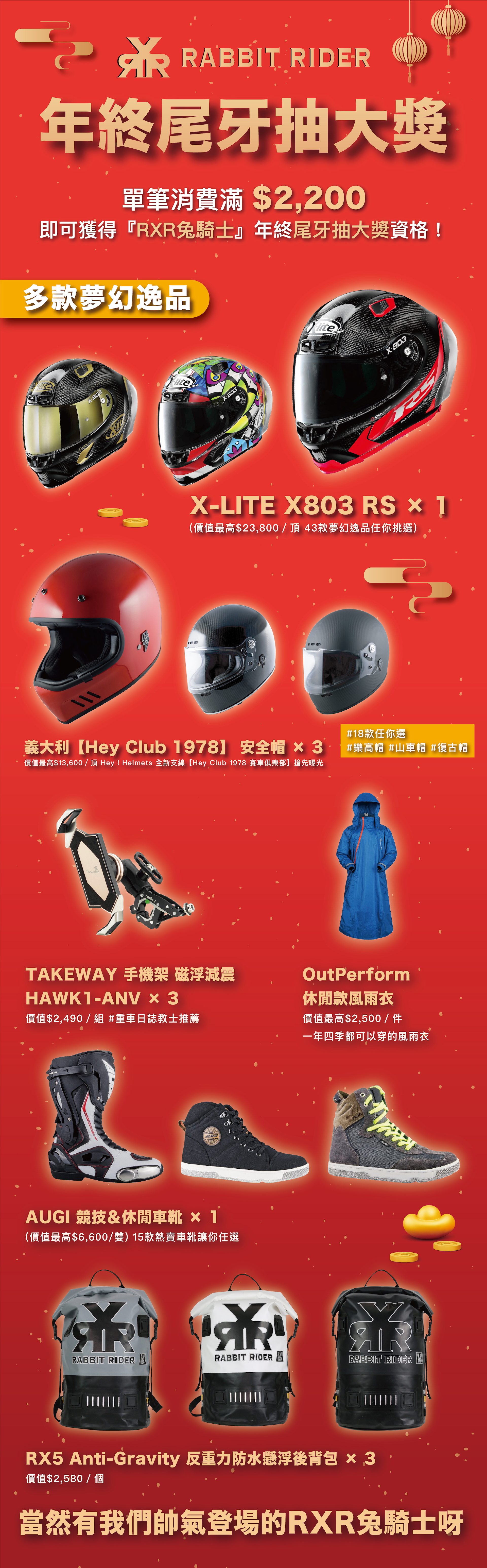 🏆 單筆消費滿$2,200,即可參加RXR尾牙抽大獎資格。